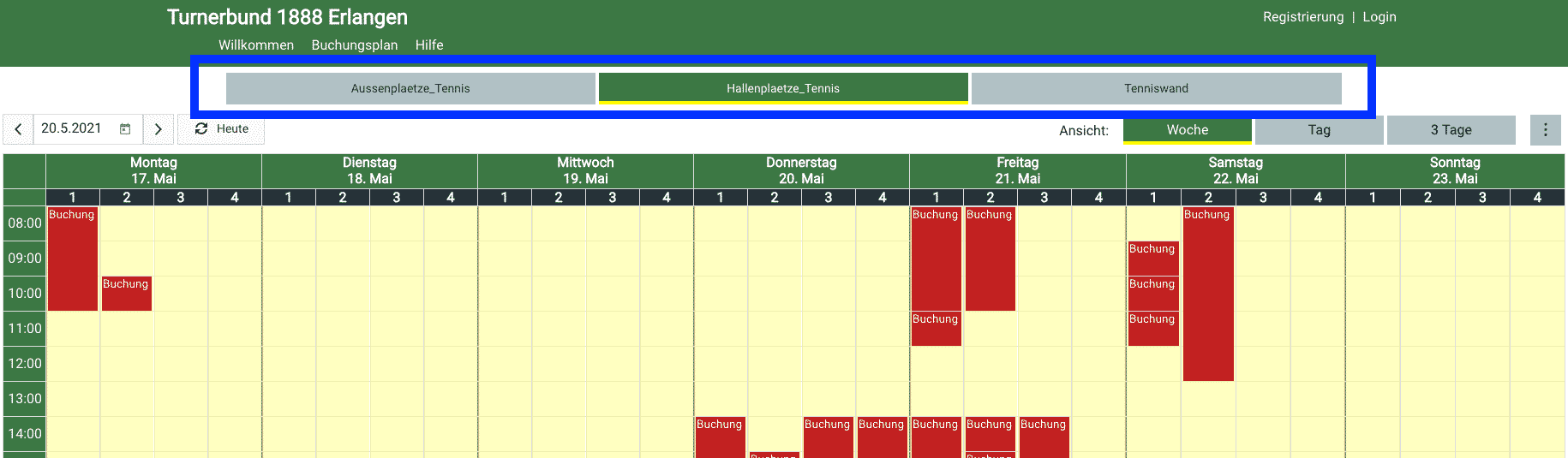 1. Wählen Sie zunächst auf der Website tennis04 den Platz oder Raum, den Sie buchen möchten.